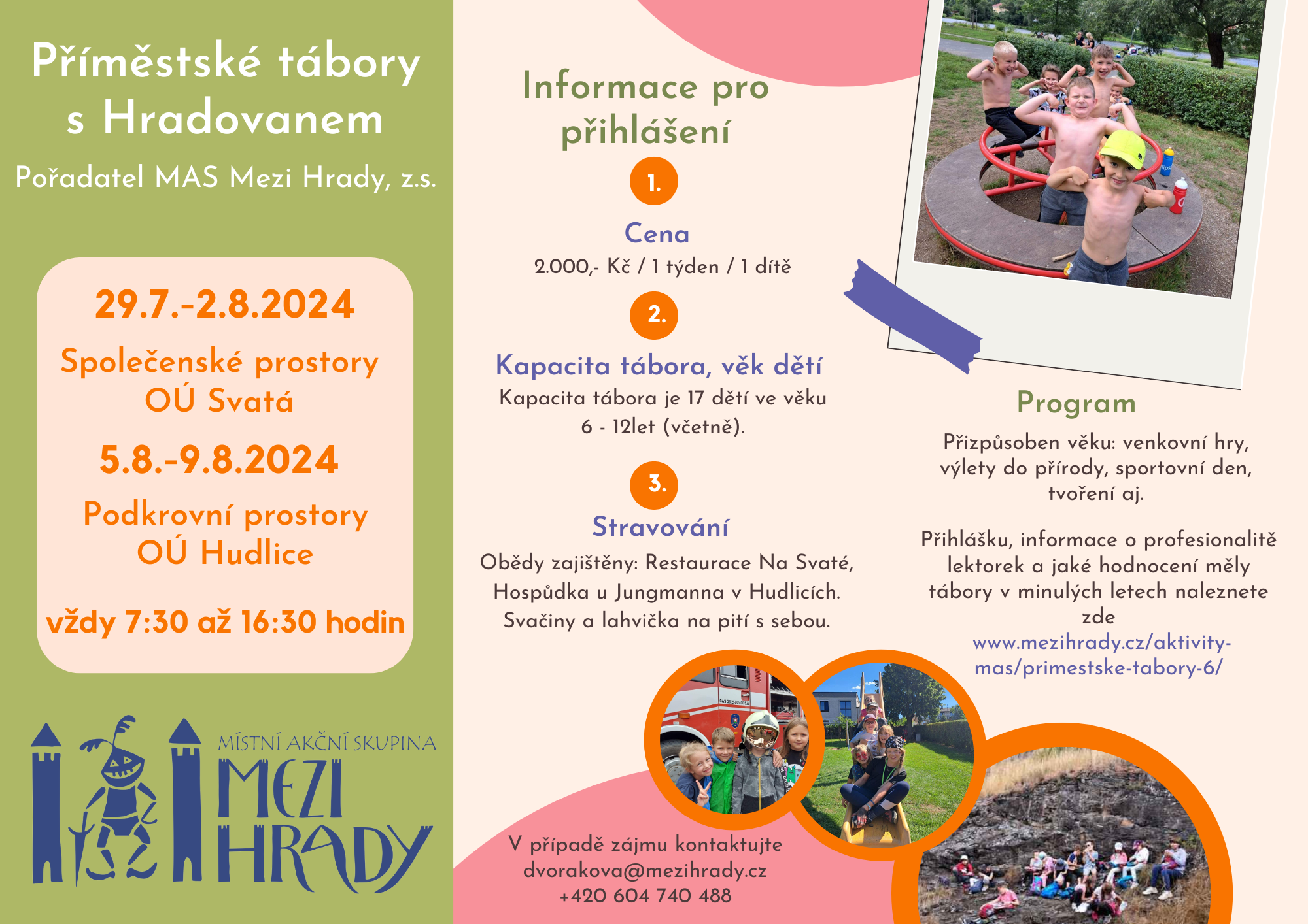 MAS Mezi Hrady, z. s. nabízí dětem účast na příměstském táboře v Hudlicích a na Svaté.